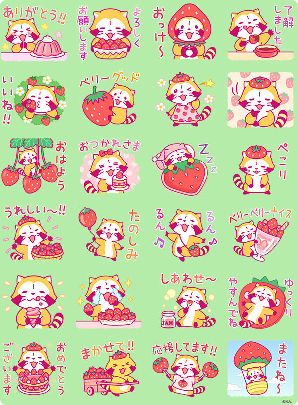 ・スタンプ名称:いちごラスカル☆手軽にお返事スタンプ ・対応機種:Android™、iOS対応端末 ・販売価格:100LINEコイン(アニメスタンプ/24スタンプ入り) ・スタンプショップURL:https://line.me/S/sticker/37168
