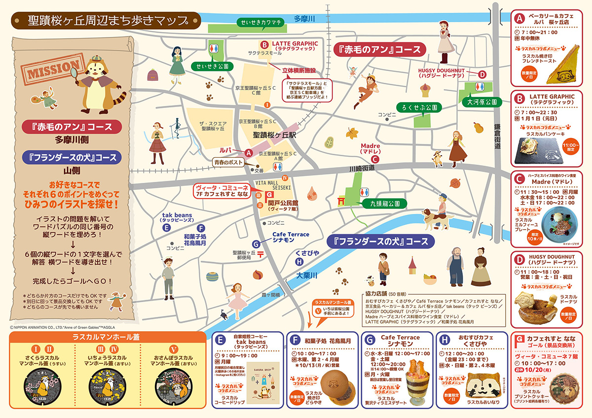 1975年に放送された『フランダースの犬』から始まった「世界名作劇場」シリーズは、深いメッセージと感動的なストーリーによって、人々の心に響き続け、次の世代へと引き継がれている名作です。多摩市で制作された名作とともに、聖蹟桜ヶ丘のまちを歩いてみませんか?