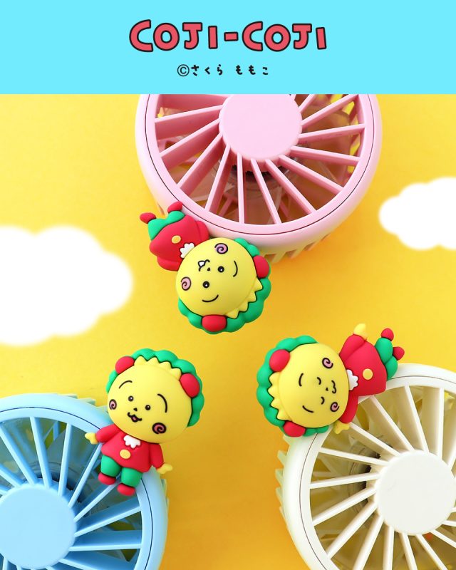 軽量でコンパクトなハンディファンに、コジコジのフィギュアをあしらった、見ているだけでも癒されるアイテム。カラビナ付きでバッグに取り付けたり、ストラップを付けて持ち歩くのにも便利です。3 段階の風量調節が可能で、可愛らしさだけでなく機能性も兼備。この夏は、コジコジと一緒に涼しく、快適なお出かけを楽しんでみて下さい!