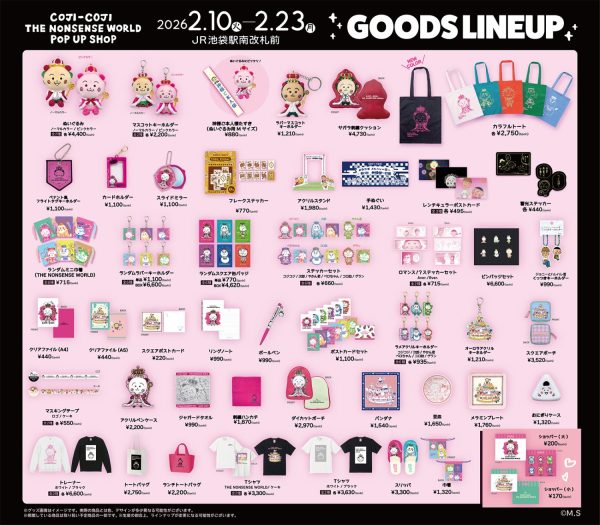「COJI-COJI THE NONSENSE WORLD ポップアップショップ」を、2026年2月10日(火)~2026年2月23日(月)の期間、JR池袋駅南改札前で開催いたします。COJI-COJI THE NONSENSE WORLDのグッズをご用意してお待ちしております!