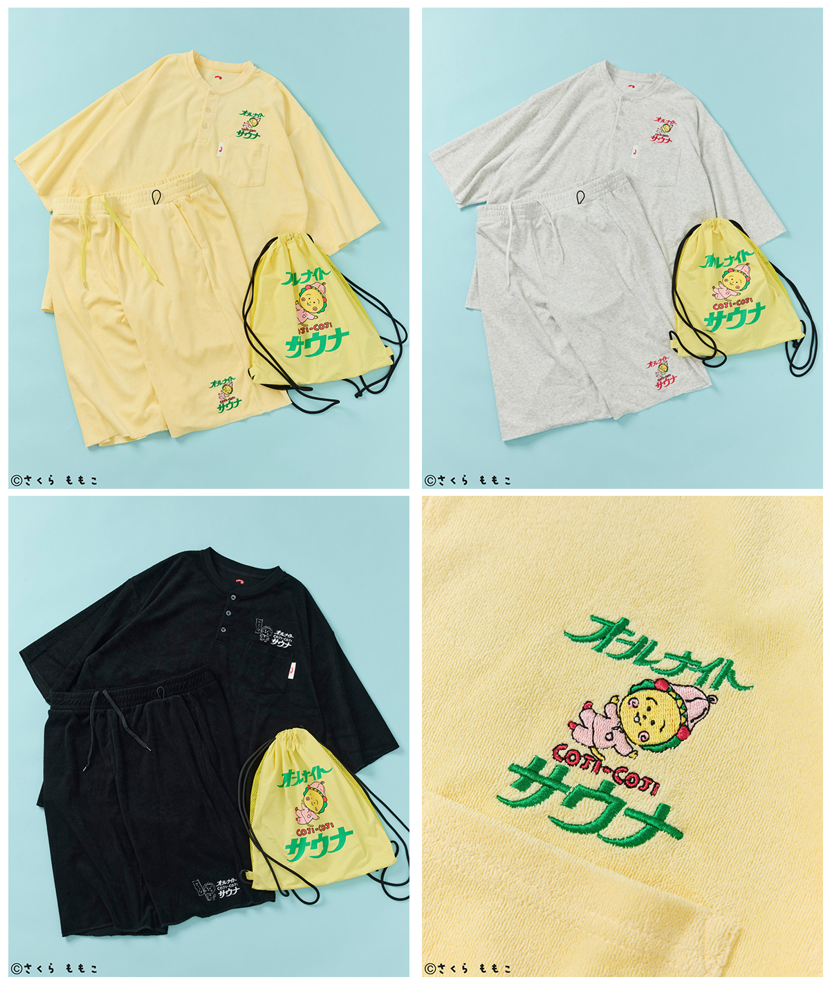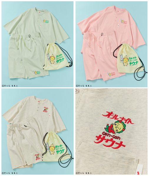 アイテムはスーパー銭湯などで見られる館内着(かんないぎ)をイメージしたセットアップをはじめ、銭湯通いから普段使いまで活躍するメッシュバッグ付きのタオルセットをラインアップ。
